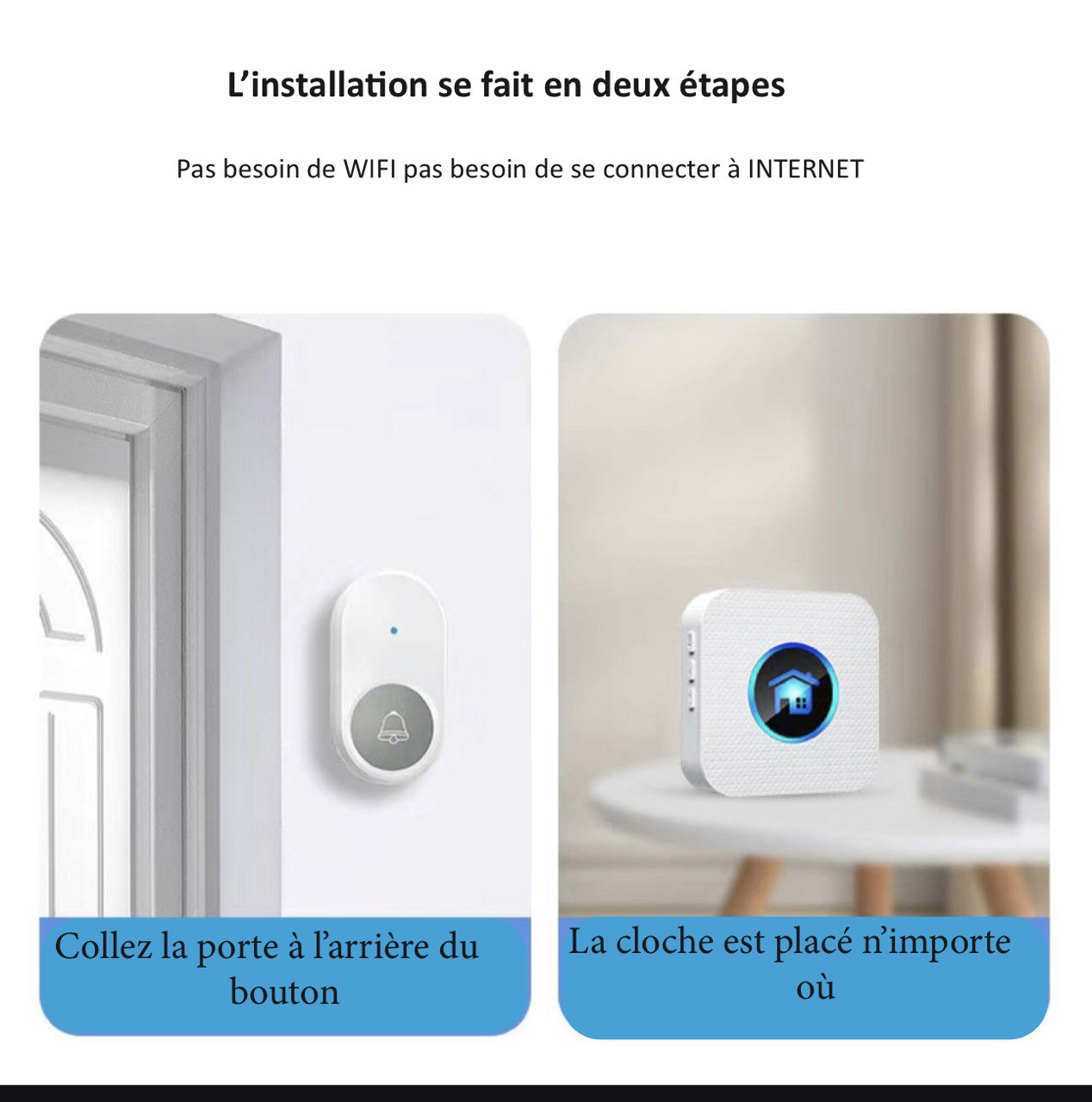 Sonnette sans fil performante et durable ; (pas besoin d'internet juste avec des piles) : • Portée longue distance : Plus de 400 mètres, idéale pour les grandes maisons, bureaux ou espaces commerciaux.
