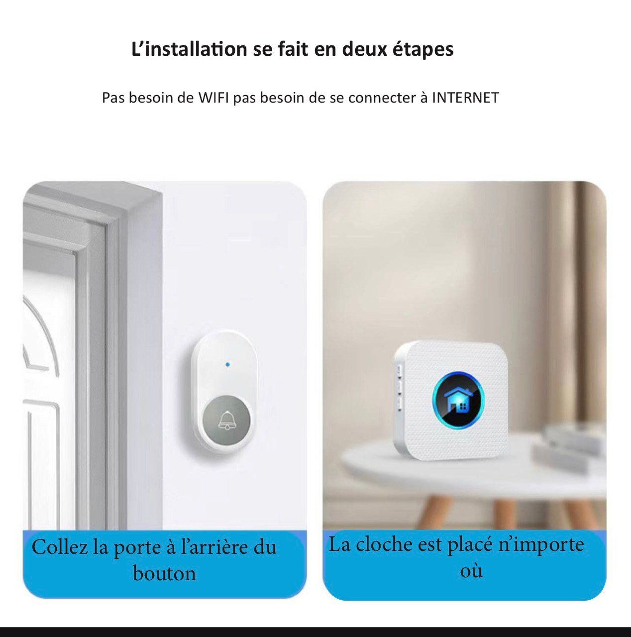 • 🚪 Installation en 2 étapes — collez le bouton à la porte et placez la cloche où vous voulez